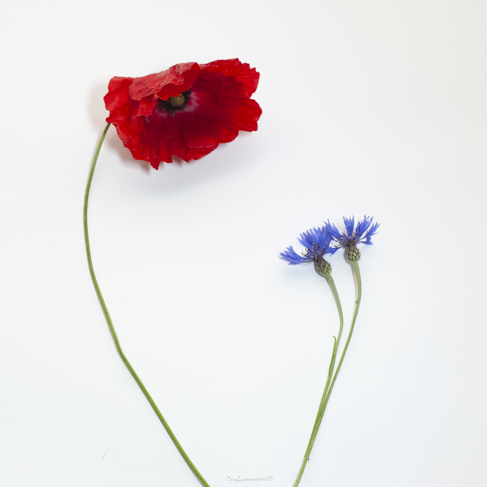 Molto carina questa composizione con i fiori che si guardano ed il papavero che domina la scena, delizioso l'accostamento cromatico.