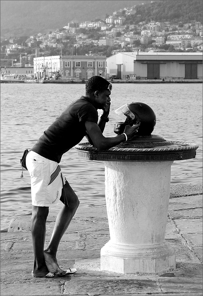 A mio parere la foto narra a prescindere dal suggerimento del titolo, comunque molto sagace...