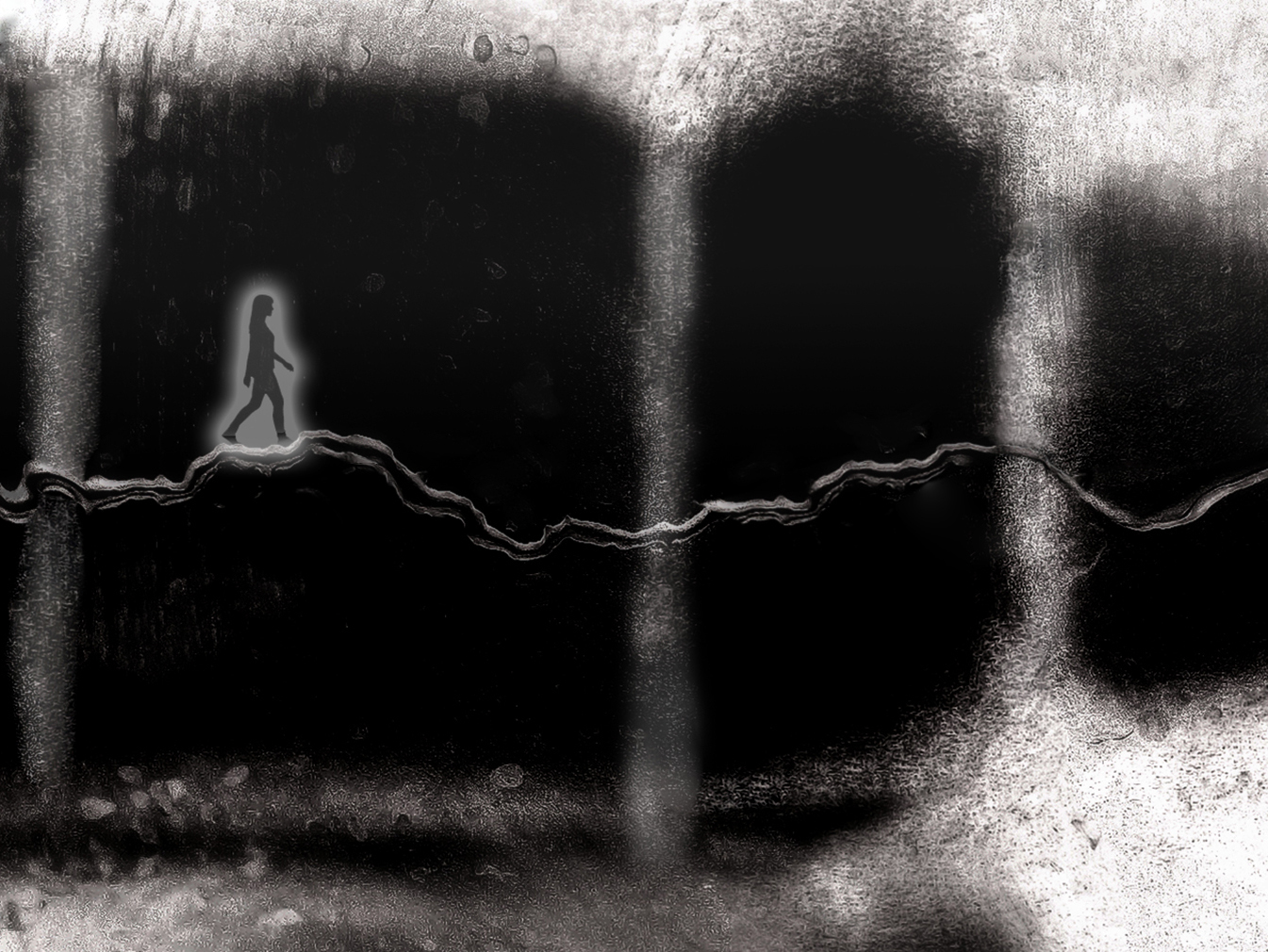 Ti ringrazio. E' una elaborazione del lavello della cucina, con un “rivolo” d' acqua e forti riflessi sulla sua superficie. Per rendere neri i riflessi e chiare le ombre, ho invertito il bn e, per avere il rivolo orizzontale, ho ruotato l' immagine di 90°. Ho sovrapposto la silhouette con l' alone tramite i livelli di fotoshop..