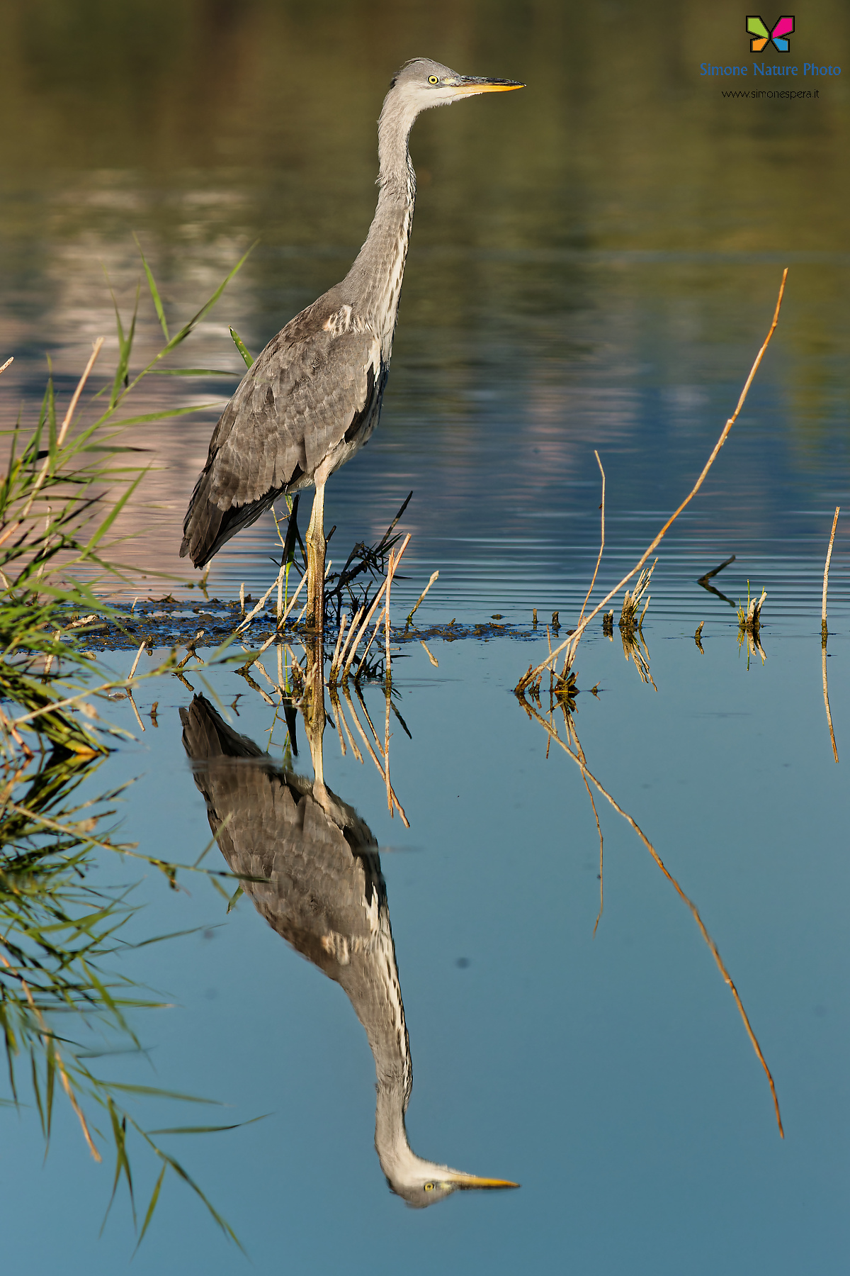 Una bella immagine ben composta con tanto di riflesso speculare. Bella l'ambientazione con i due rametti più lunghi che seguono le curve del cenerino.
