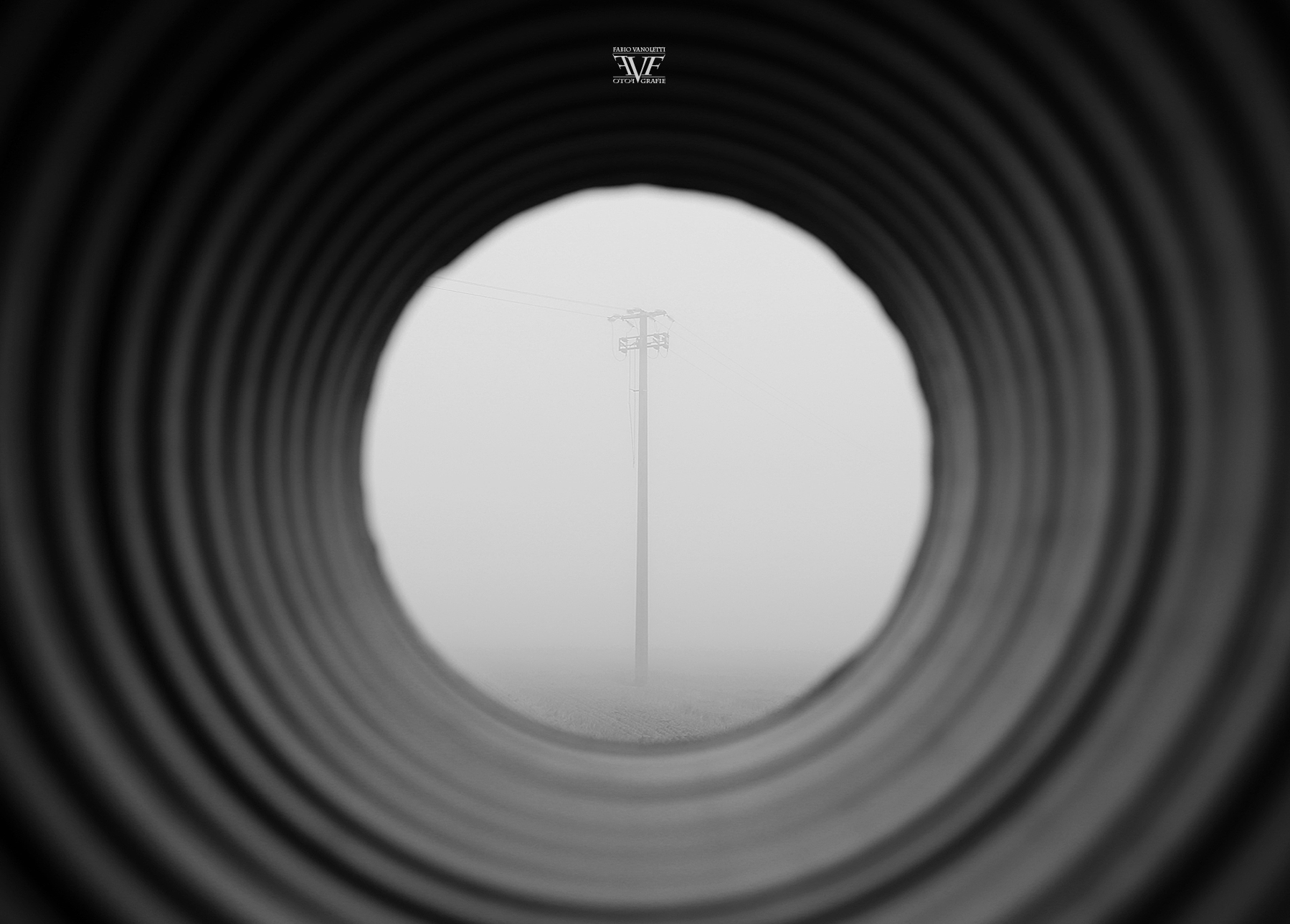 Il palo della luce nella nebbia è subito un chiaro richiamo a certe immagini di Luigi Ghirri e alla sua Emilia.