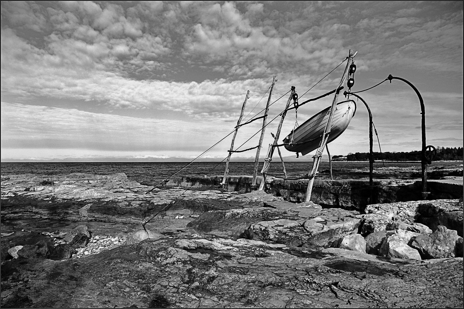 Particolare visione di questa località in significativo punto geografico nell'ampio golfo di Trieste al confine croato-sloveno. Piacevole il ricco bianco e nero e attraente l'imbarcazione sospesa che fa da principale soggetto. Ciao, Francesco _________________ Fotocamere Olympus OMD e PEN, Panasonic G3. Software GIMP