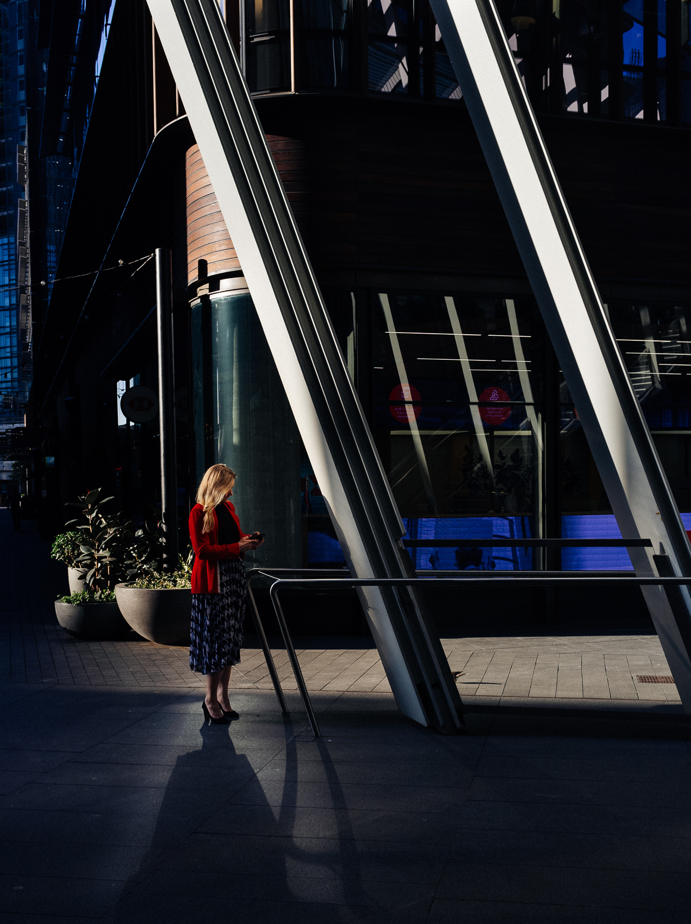 C'è un filo (spesso... rosso) che unisce molti di questi scatti ambientati in queste cornici urbane, con questa luce decisa che irrompe a modellare le forme e chi le abita. Verrebbero forse ulteriormente valorizzate dall'essere raccolte in una serie che amplificasse le qualità dei singoli scatti.