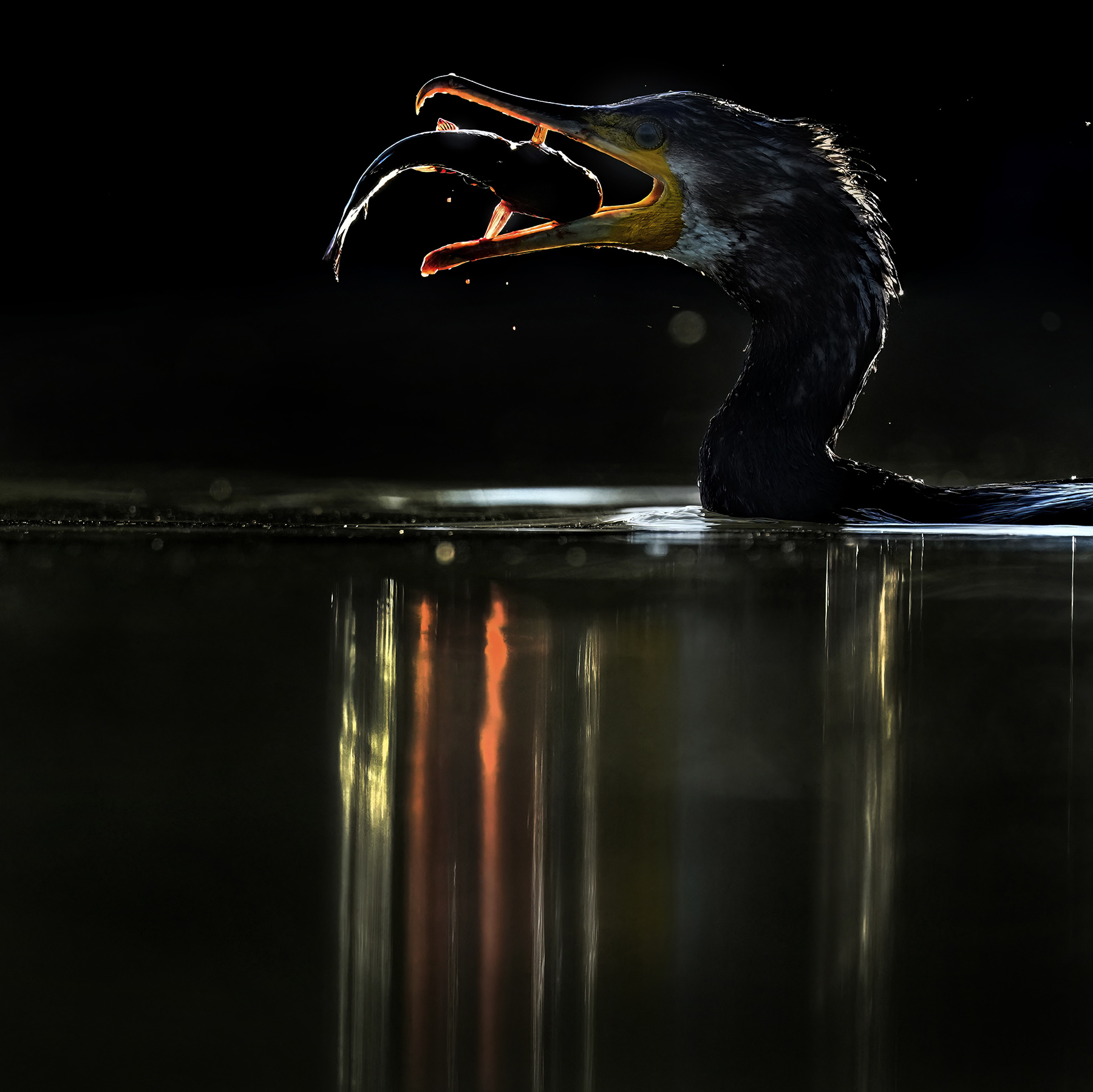 | Ultime luci ,il Cormorano alle prese con un pesce Gatto, la sorte del povero pesce è segnata... |
