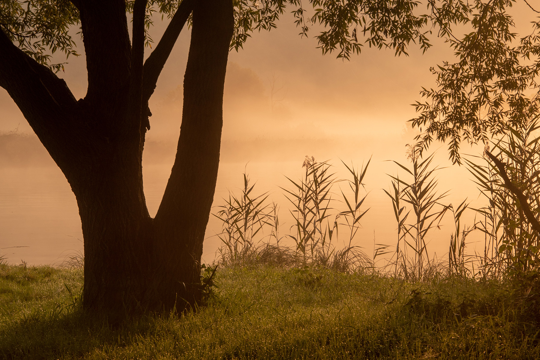 Il massiccio tronco a confronto con le sottili canne, bella la luce che hai gestito come sempre al meglio, immagine molto elegante