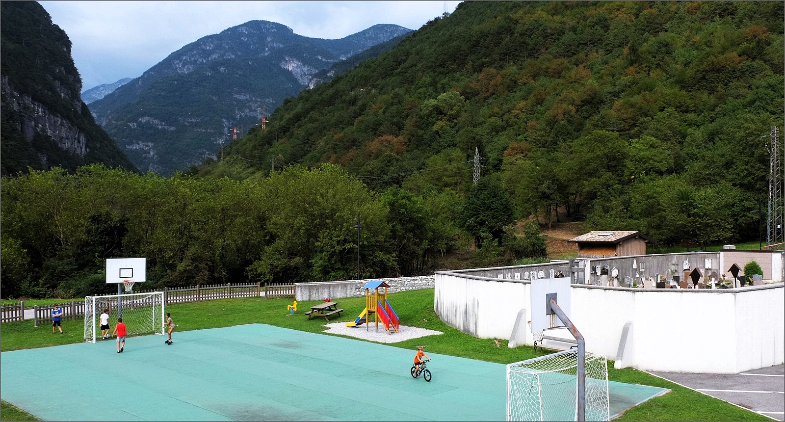 Forse questo significato si diluisce un po' nella vastità del paesaggio, tanto che immagino un ritaglio della porzione inferiore destra, che comprenda soltanto il bimbo in bicicletta, i giochi ed il cimitero. Non so...