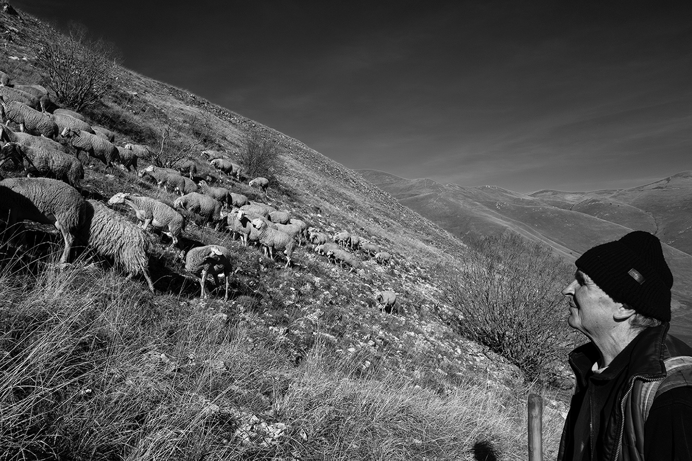 Foto di un mondo antico, da testimoniare finché dura. Bella la costruzione sulla diagonale, con lo sguardo del pastore verso la salita a trasmettere il senso del procedere faticosamente.