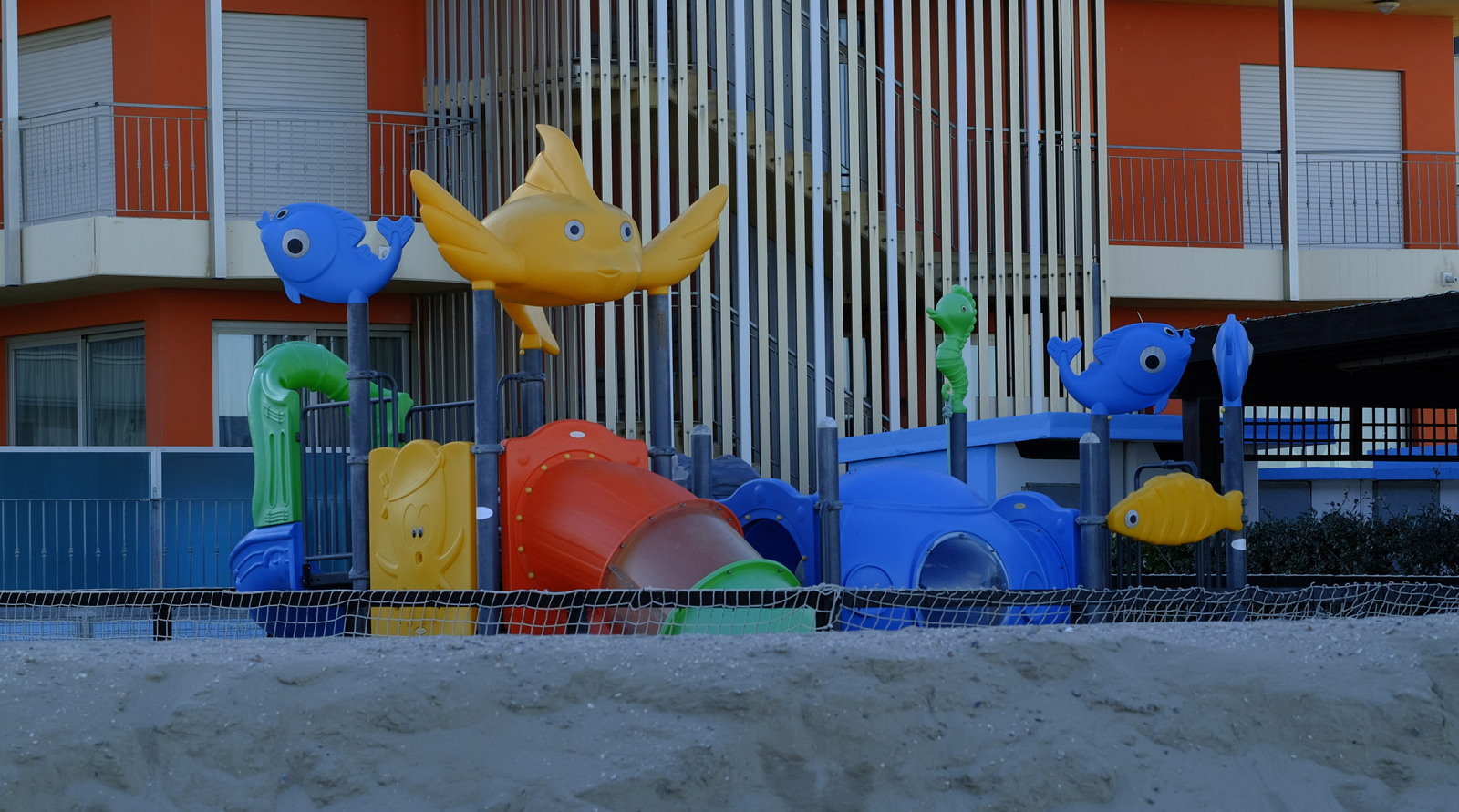 Proverei una maggior luminosità sui giochi, senza toccare la parte di sabbia che può richiamare il fondo marino.