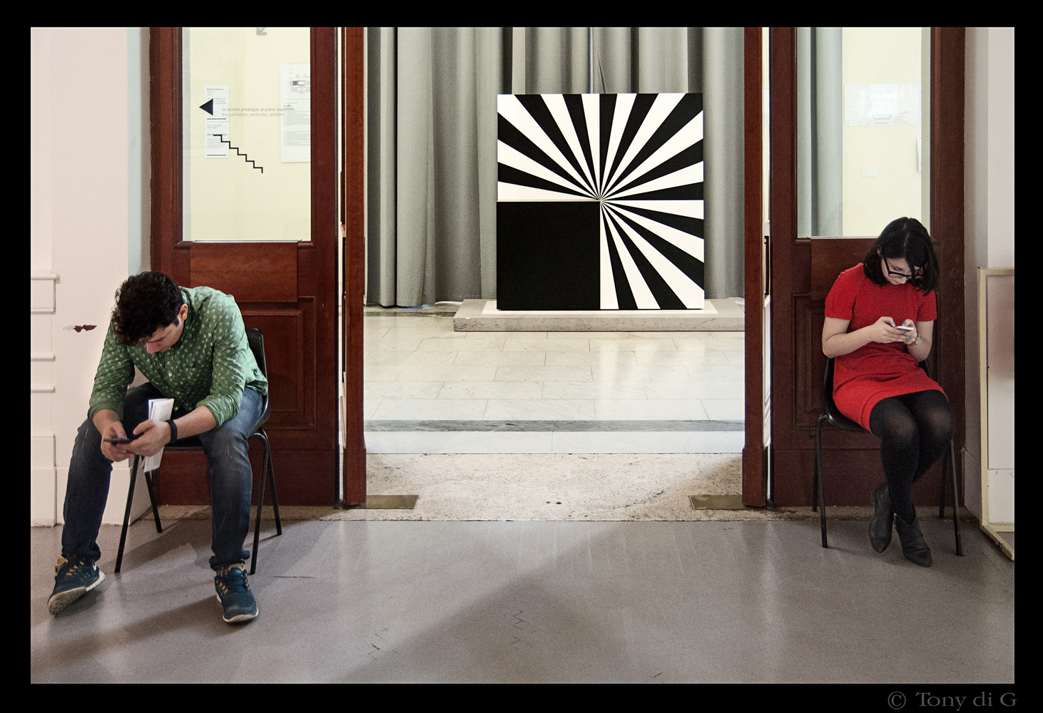 Sempre più vuoti gli spazi tra le persone,senza telefonini la coppia scommetto avrebbe iniziato un dialogo.Ottima composizione,belli i colori e bella anche la proposta monocromatica di Antonio. Ciao,Sergio.