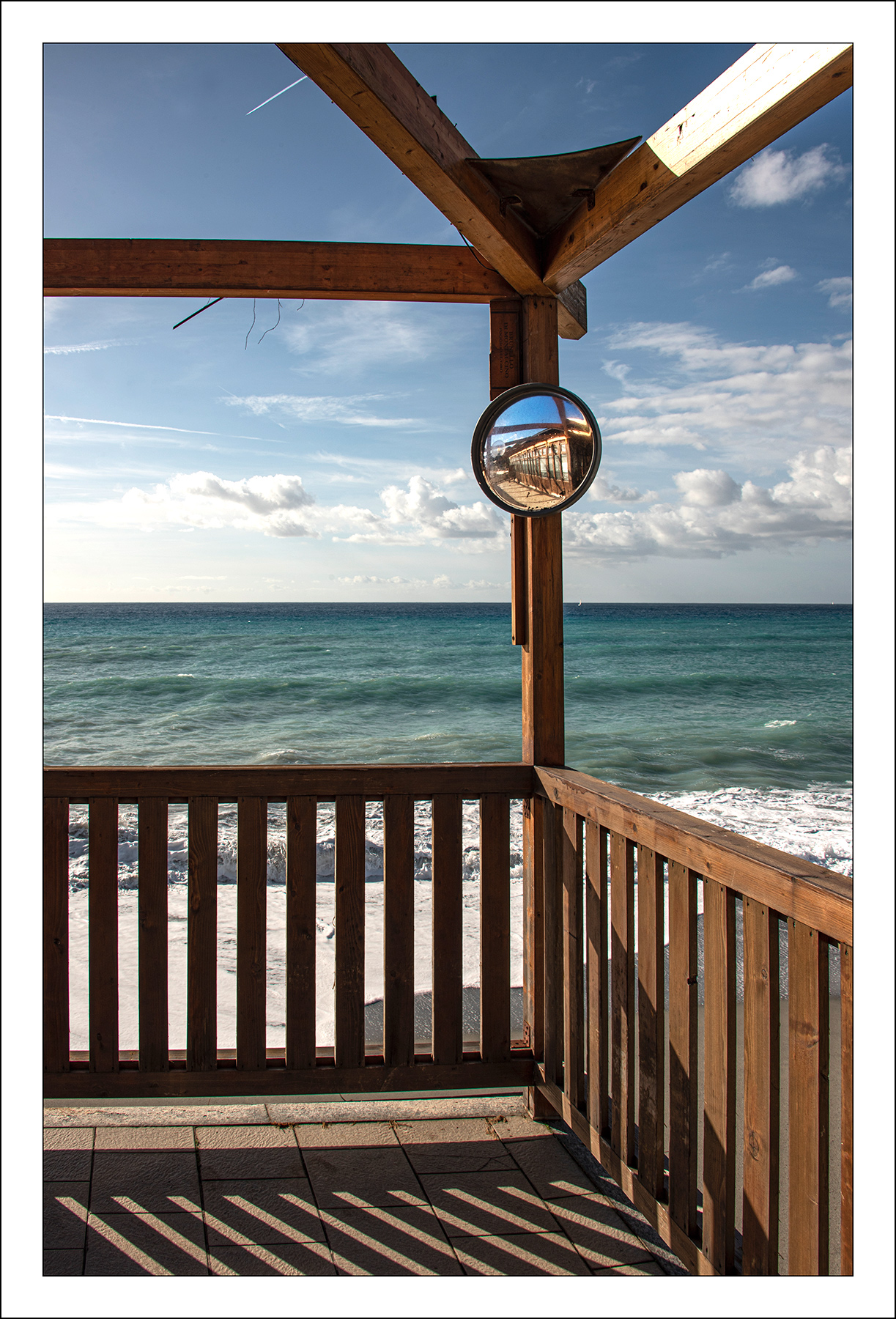 Bella composizione, geometrico-paesaggistica, con lo specchio che la rende originale e più vivace Belli i colori decisi, ottimo il dettaglio… e simpatico il parallelismo Mi piace.