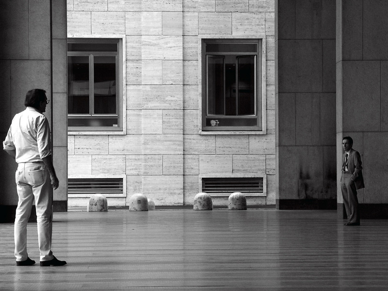 Forse un po' troppo vicino al margine sinistro dell'inquadratura il tizio in camicia ma mi sembra molto riuscita.. L'altro in giacca a sinistra è un 'attore' perfetto in questa foto!