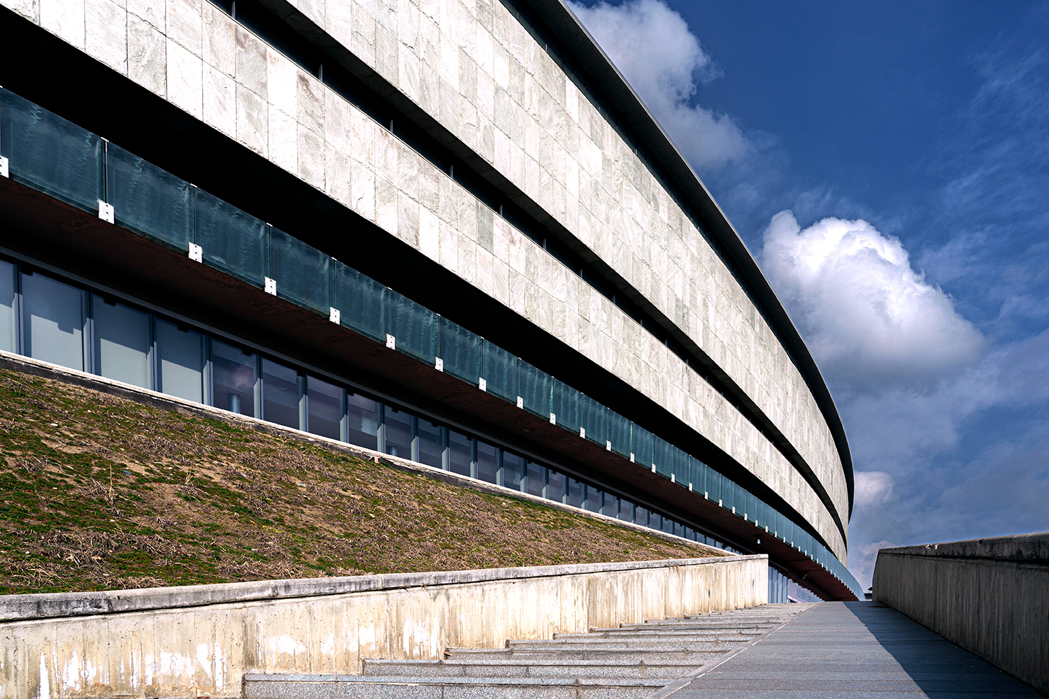 Le linee di fuga sembrano convergere e perdersi verso il cielo.