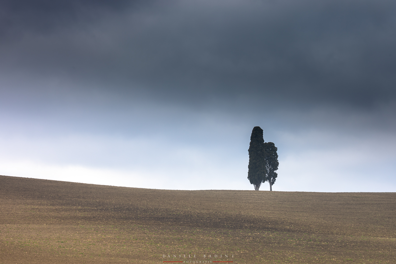 Elegante nei toni e particolare per via di quella coppia di cipressi come fidanzatini che guardano l'orizzonte...