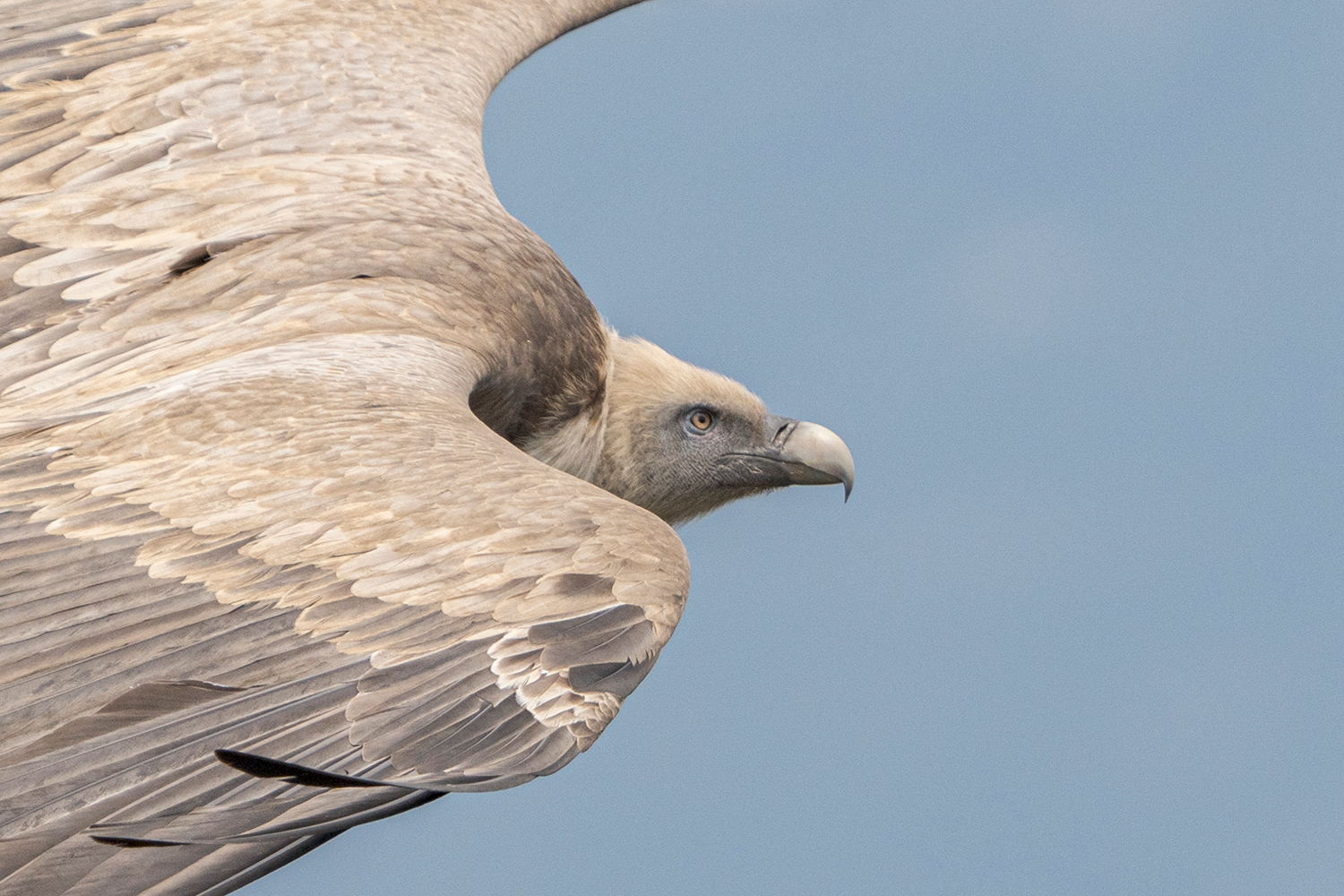 Un 600 mm ottimamente utilizzato per proporci un impressionante primo piano del Grifone. Ma il merito va oltre in quanto la suddivisione a metà: volatile-cielo, funziona molto bene
