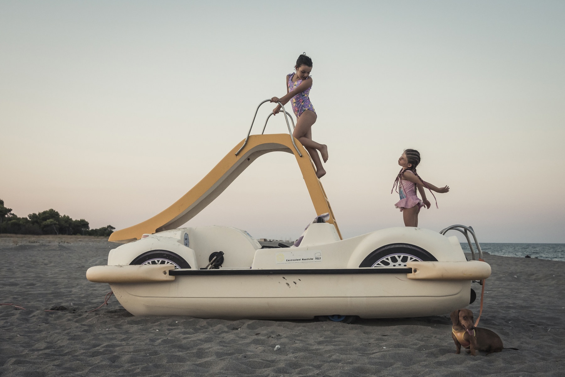 Luce sospesa e un tocco di surrealtà che viene da un pedalò con pneumatici.