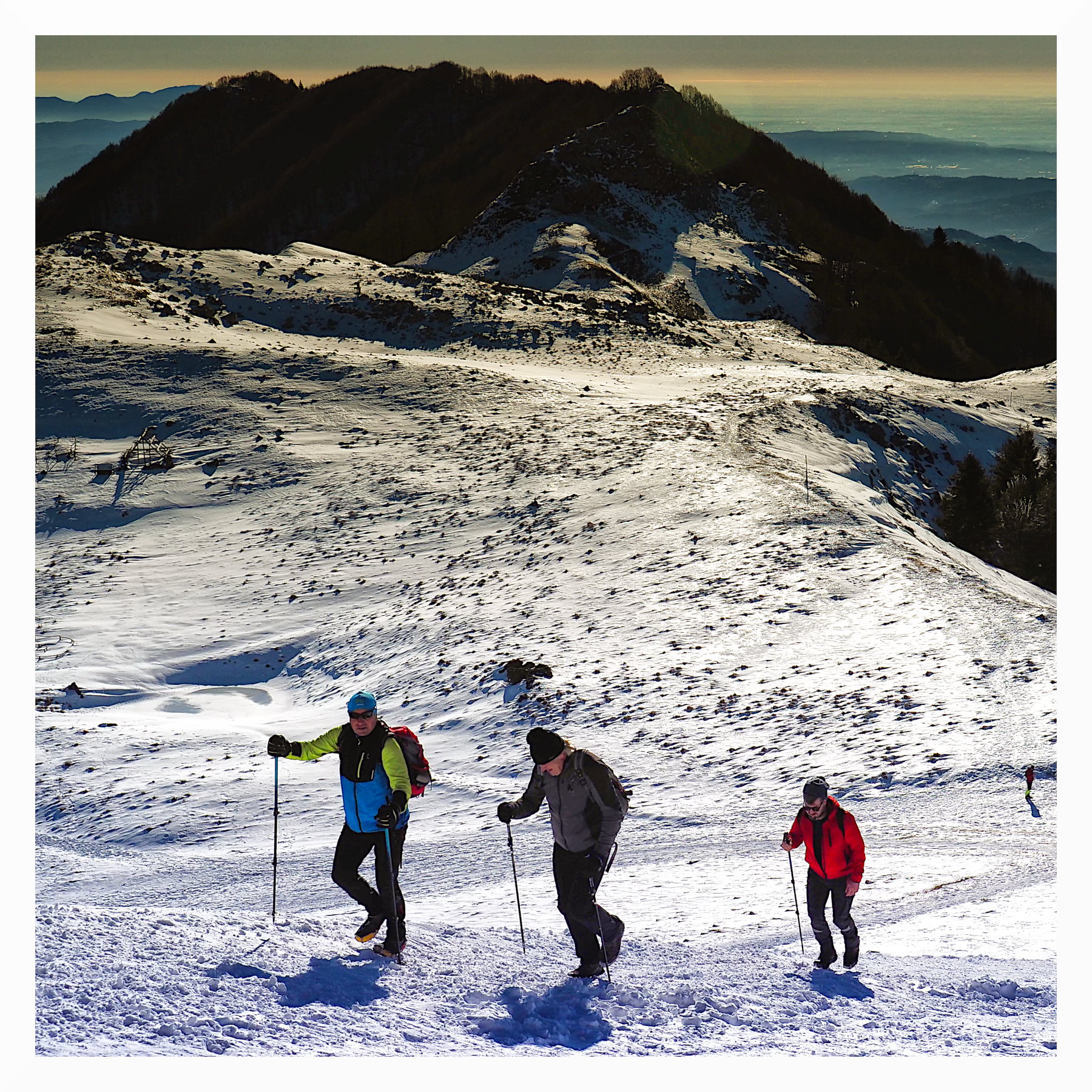 I tre escursionisti sono i protagonisti di questo scatto, nonostante la relativa piccolezza rispetto all'ambiente, e diventano il fulcro dell'immagine.