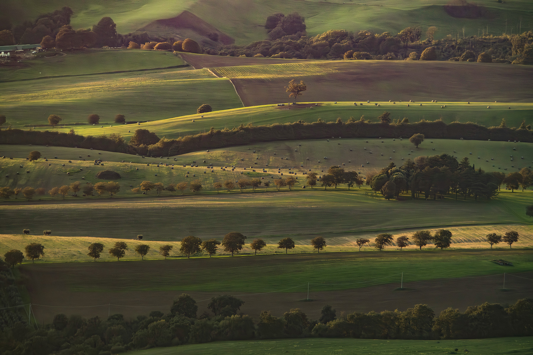 Stupenda sinfonia di verdi, di gialli aranciati, per questo paesaggio collinare ripreso con sguardo schiacciato dal teleobiettivo. Non è sgargiante di luce, ma si apprezza bene andando a guardare sommessamente nei numerosi dettagli che la luce che disegna magnificamente. Complimenti. Ciao, Francesco _________________ Fotocamere Olympus OMD e PEN, Panasonic G3. Software GIMP