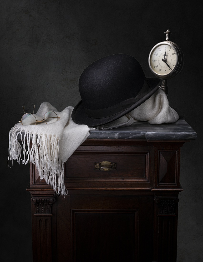 La bombetta è troppo buia e l'orologio troppo brillante, mi pare.