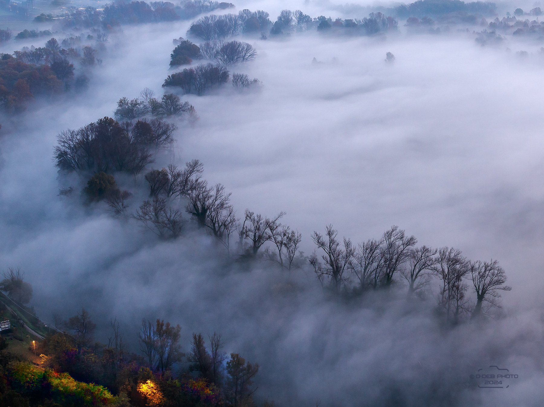 La visione è bellissima: l'effetto della nebbia al suolo con gli alberi che sbucano è ogni volta meraviglioso. Anche io avrei inquadrato eliminando la parte a sinistra in basso, che attira lo sguardo senza aggiungere qualità. Beata per i fotoamatori la stagione fredda per questi scenari. Ciao, Francesco _________________ Fotocamere Olympus OMD e PEN, Panasonic G3. Software GIMP