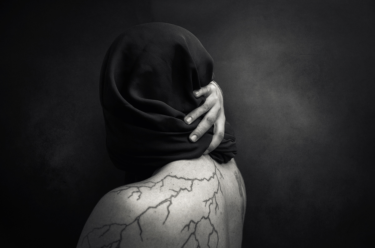 Sarà per i disegni della pelle il volto coperto e la mano che spunta e il b/n aggiunge quel senso di apprensione, che dire, bravissimo.