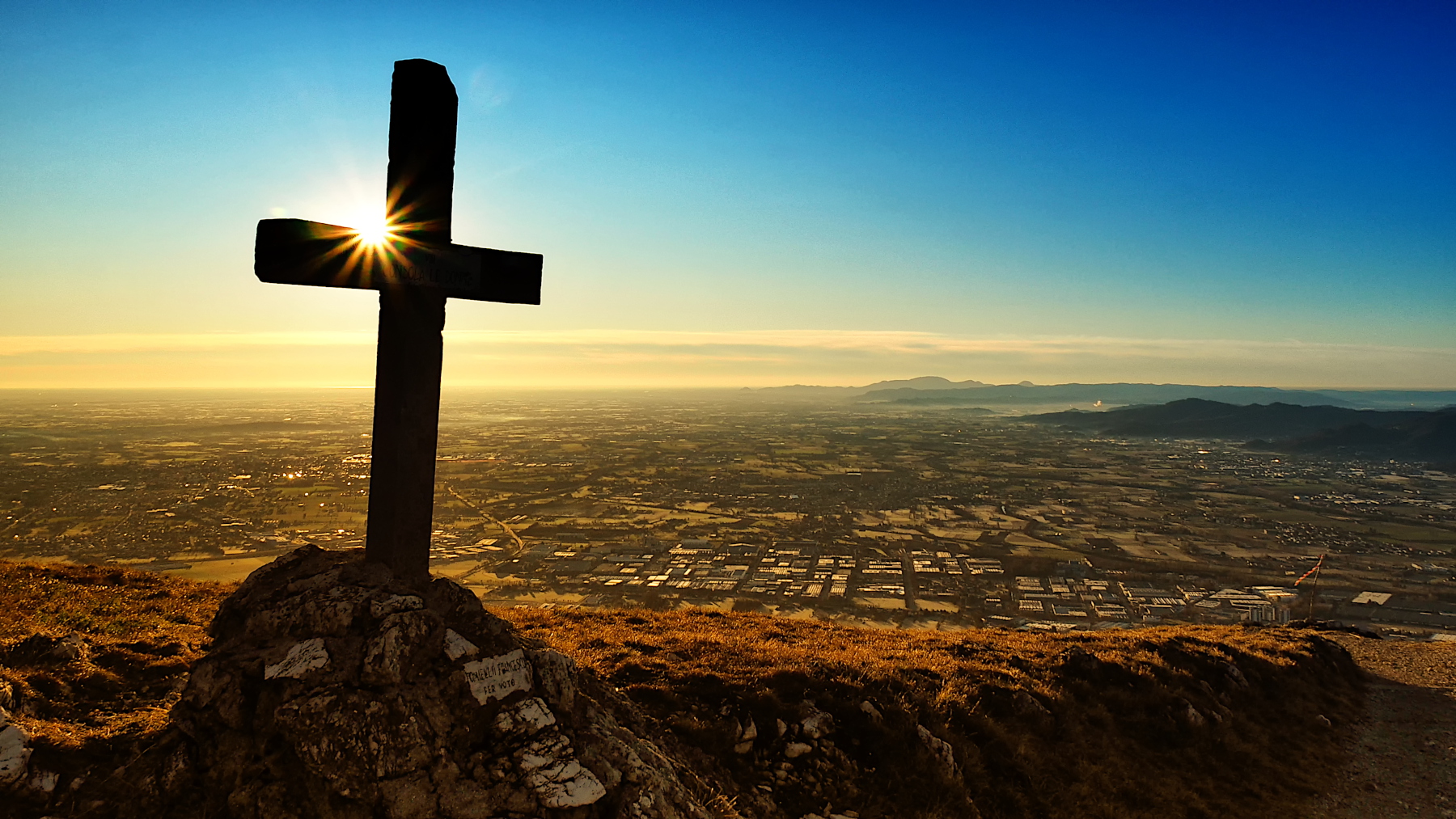 Il sole dietro la croce, molto bello, da un'atmosfera contemplativa allo scatto.