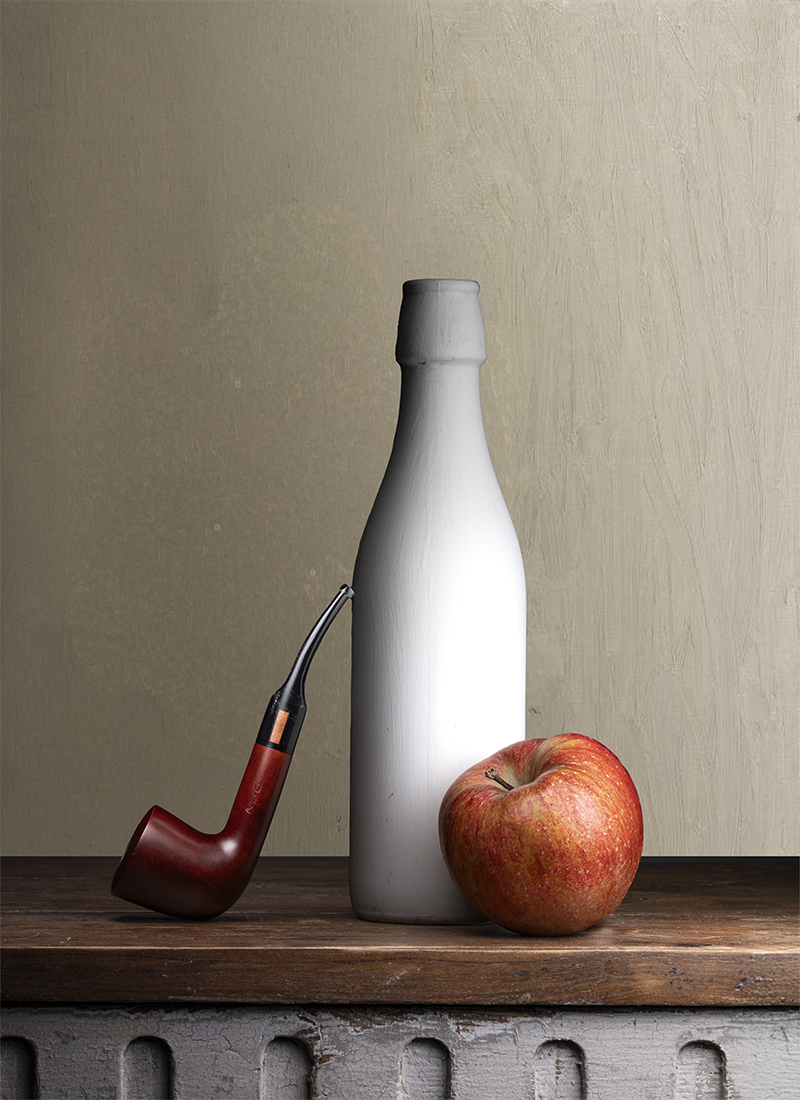 Grazie Paolo! Inizialmente la composizione era partita solo con bottiglia e mela però la trovavo un po' misera. Ho scelto la pipa perchè ha delle curve sinuose che credo si armonizzino con quelle del collo della bottiglia e con la rotondità della mela.