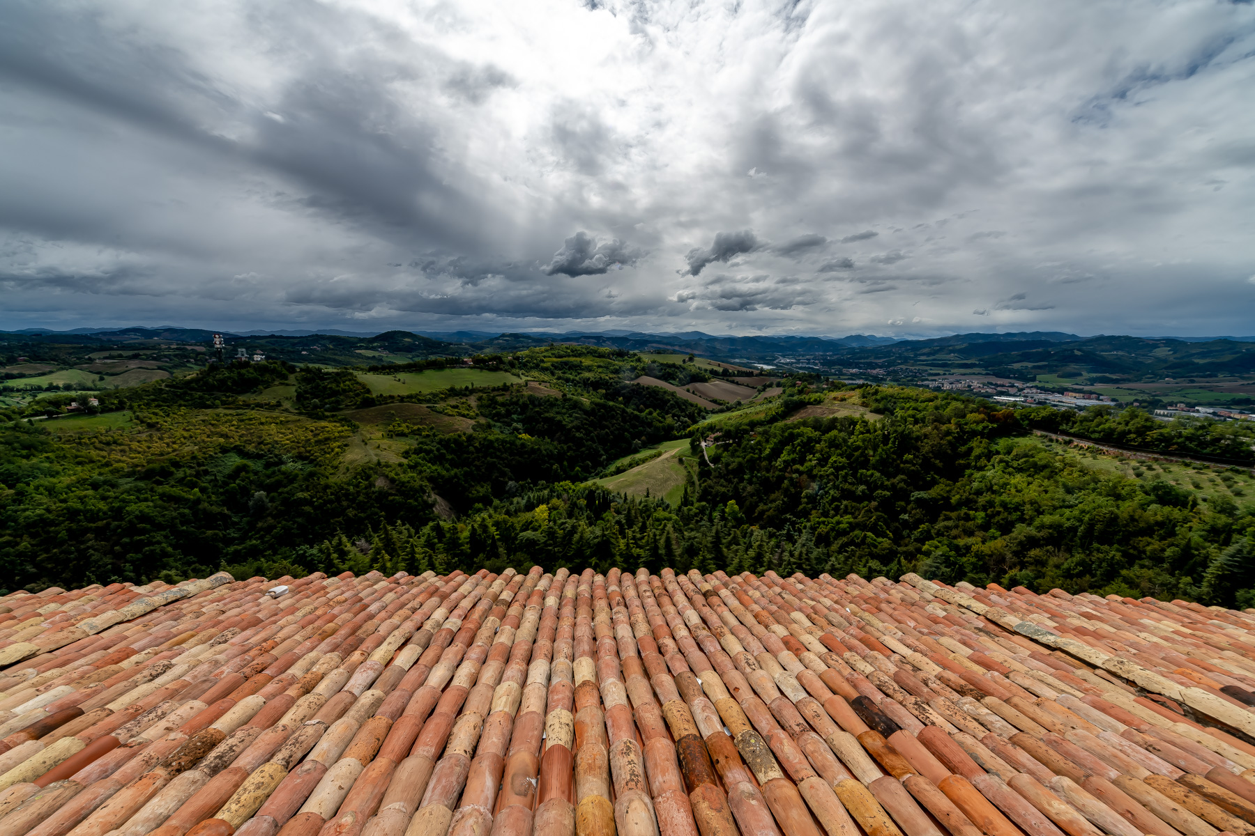 Mi piace questa foto divisa in tre parti. Bello il cielo nuvolose, incantevole il paesaggio in mezzo e bello anche il contrasto a fuoco che dà il primo piano.