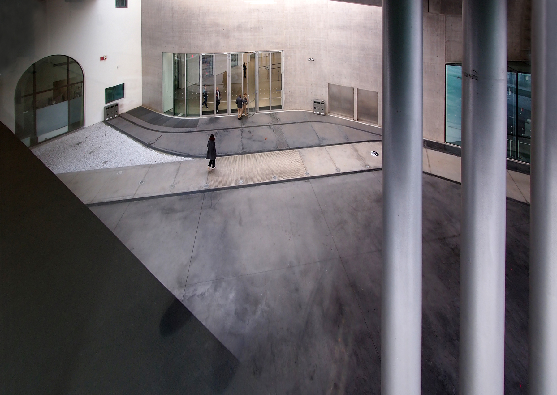 MAXXI Roma - Veduta dell'entrata attraverso una fenditura del piano superiore _________________