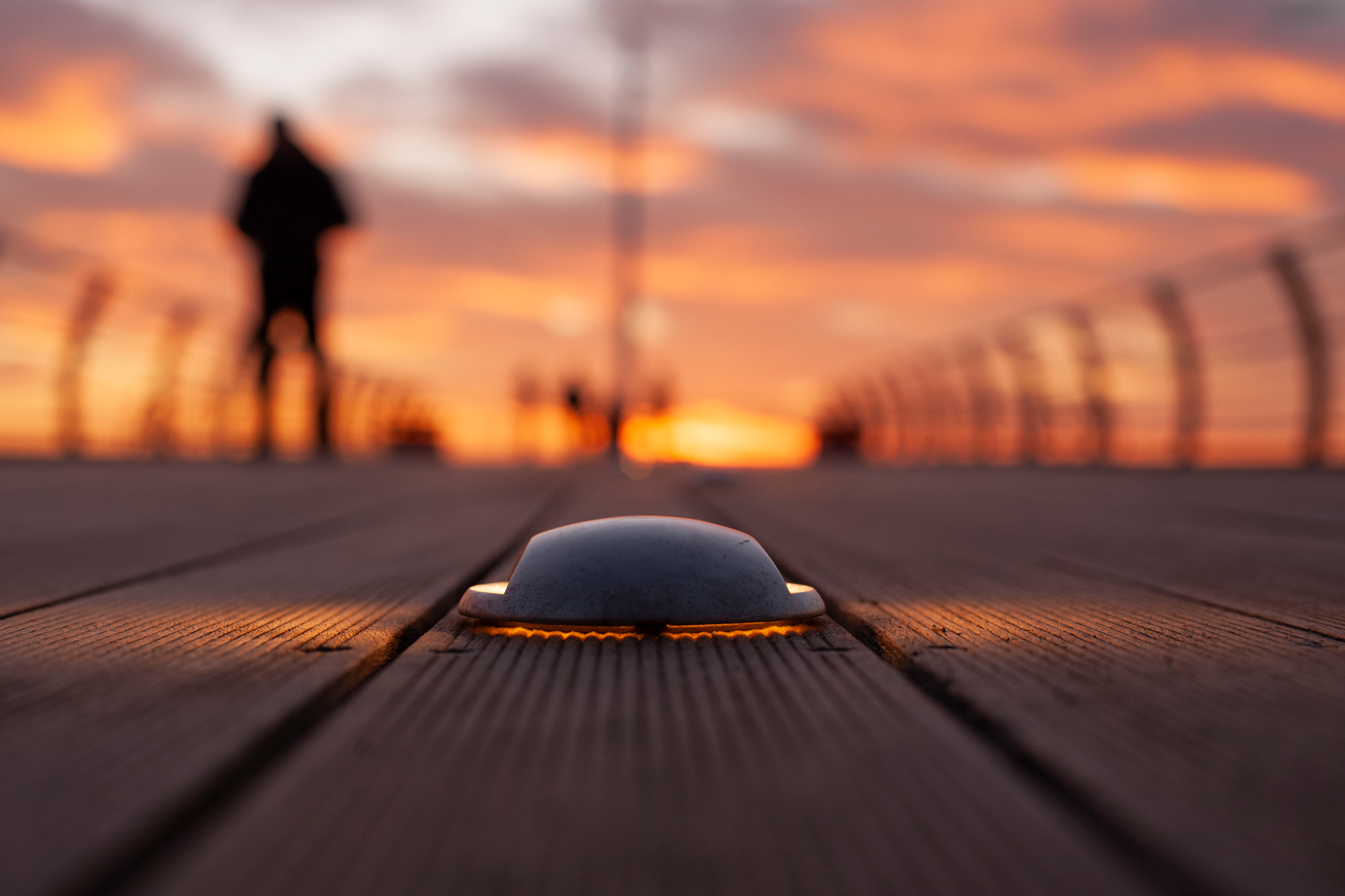 Ottima idea compositiva, in presenza di un bel tramonto è difficile andare a concentrarsi su una luce sul pavimento.
