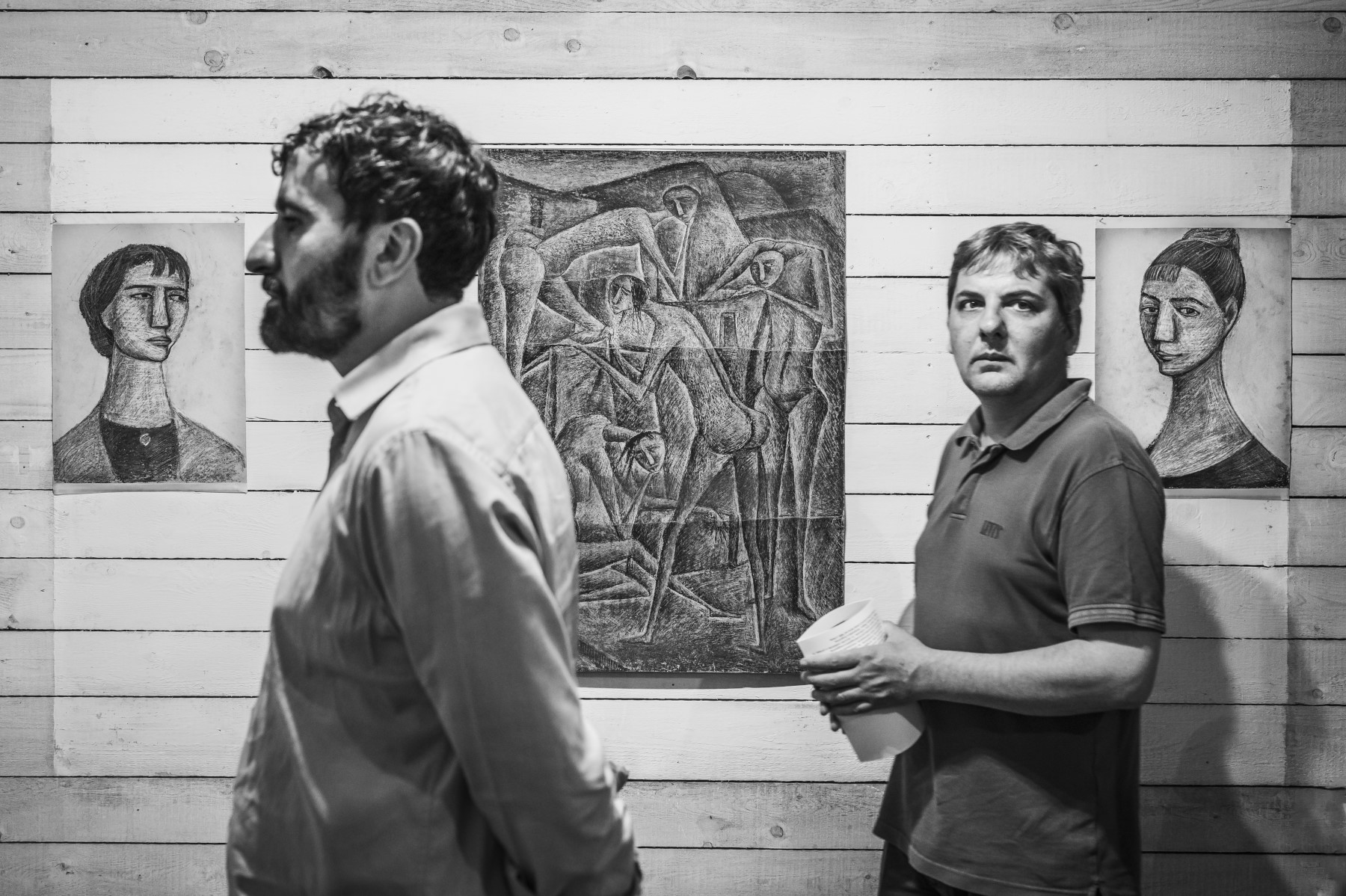Emblematica la presenza dei due uomini che sembrano non voler guardare le immagini delle donne esposte… Si può prestare a più letture, ma in ogni caso è perfettamente composta e ben gestita in un bianco e nero adeguato Ok! Ottima.