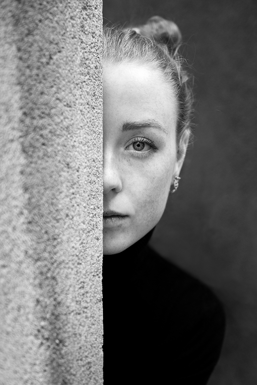 Un ritratto interessante, mi piace la scelta del mezzo volto, di la' dal muro.
