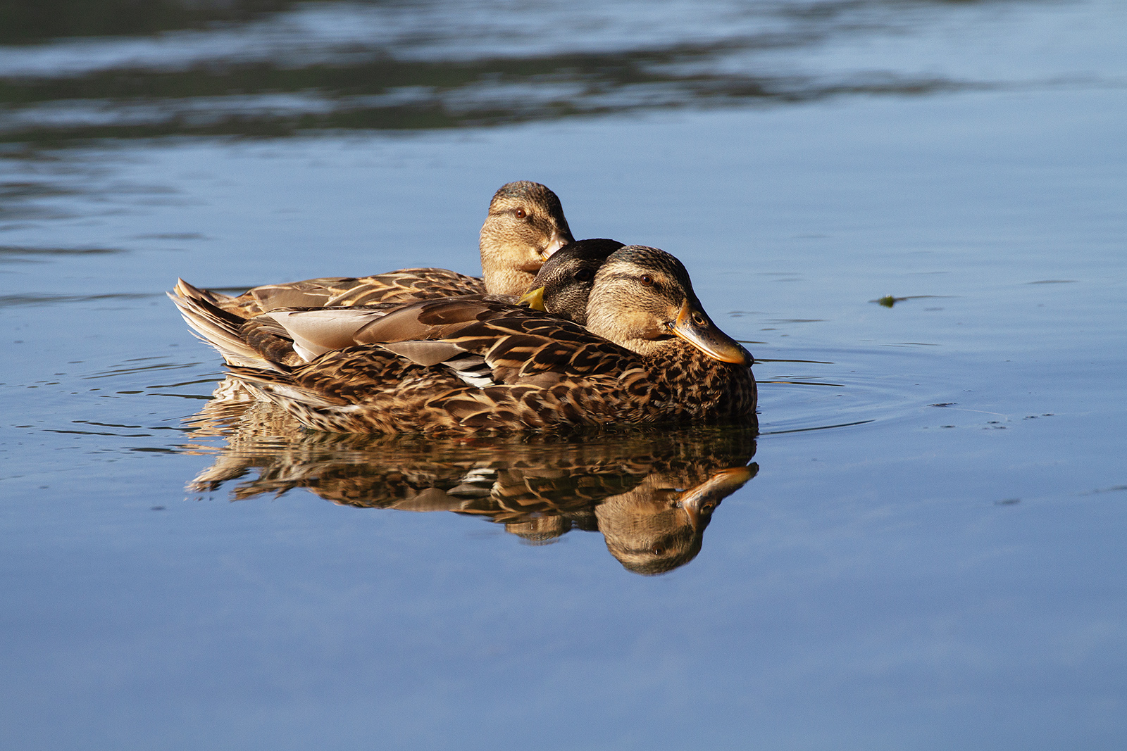 Ci tengo a precisare che i tre germani ripresi non stavano nuotando, erano fermi uniti uno con l'altro. Non so il motivo. L'inquadratura con la sovrapposizione dei soggetti quindi e' voluta, non e'un errore