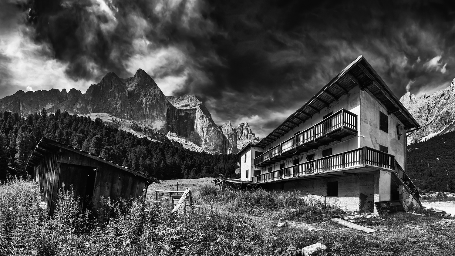 Ottima sgrandangolata (forse un po' troppo..). Bel BN ricco di contrasti con un giusto dosaggio di bianchi, neri e grigi. Cielo super. Il magnifico paesaggio dolomitico é stato ben interpretato.