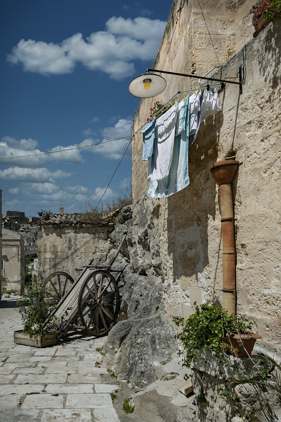 I panni stesi e le nuvole in progressione forniscono dinamicità ad uno scatto di per se statico.