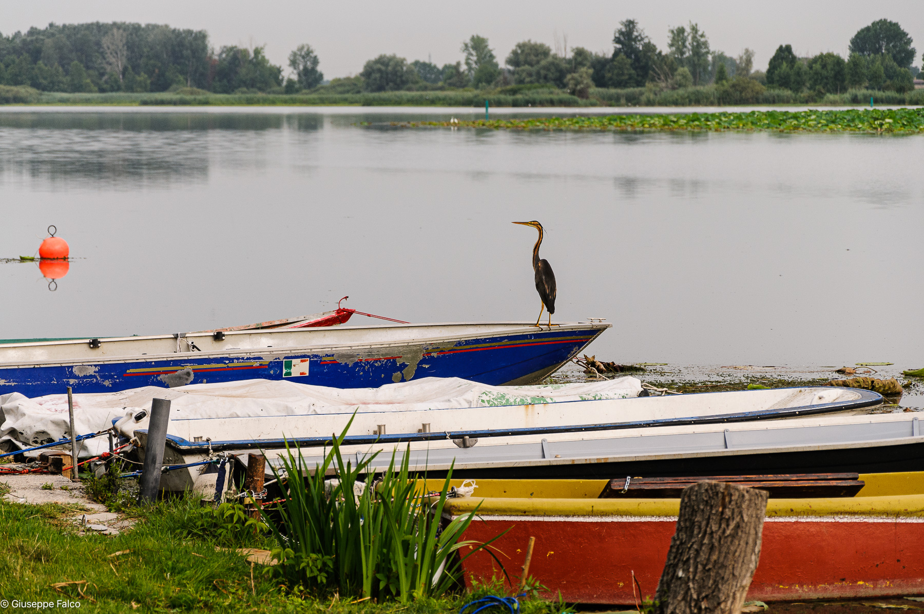 Ottimo e ironico il titolo "Il Posteggiatore" che riprende un elegante airone che vigila dalle imbarcazioni.