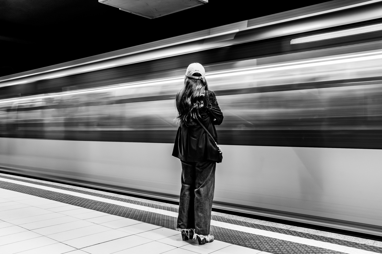 Lo scatto mi piace, hai sfruttato i tempi lunghi per creare un forte contrasto tra la persona statica e il dinamismo del treno.