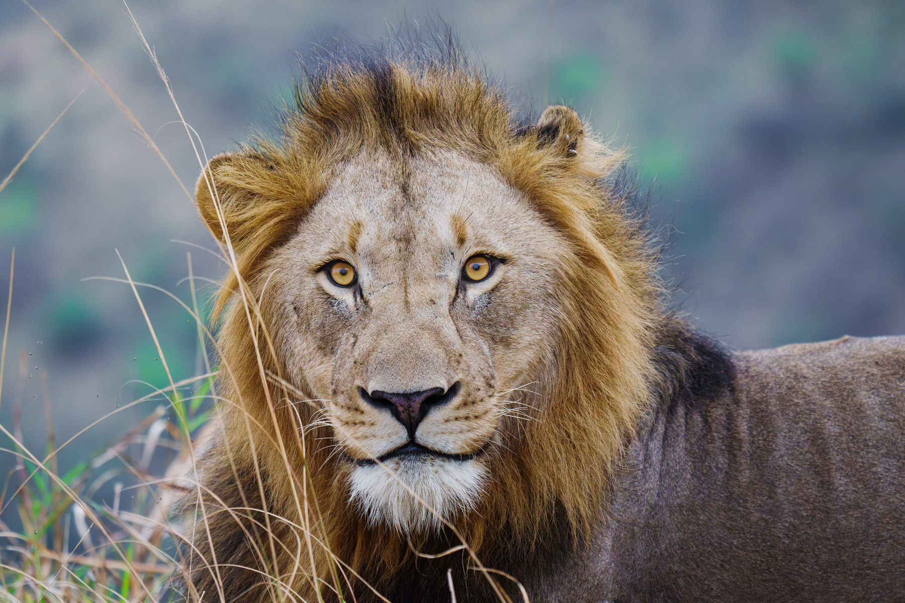 dopo varie giorni alla ricerca di un bel leone maschio ce lo siamo ritrovati a pochi metri di distanza, con lo sguardo dritto in macchina.