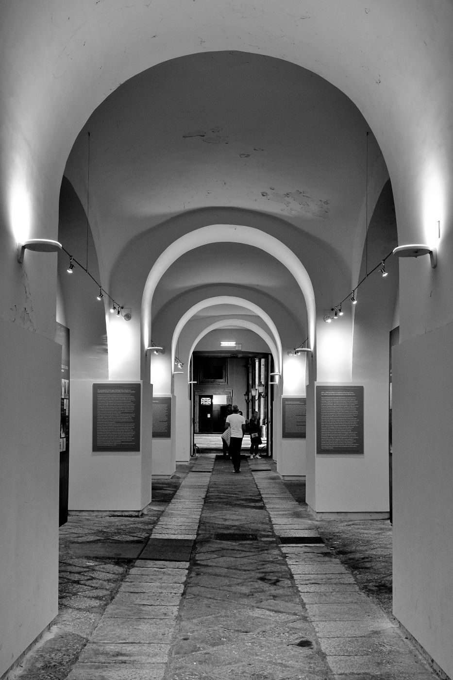 ​La composizione della foto sfrutta al massimo la prospettiva lineare data dalla successione delle arcate.Arcate che fungono da cornici ripetute, che guidano l'occhio dell'osservatore direttamente verso il punto di fuga in fondo, creando una profonda sensazione di spazio e profondità. Ciao Gianni.