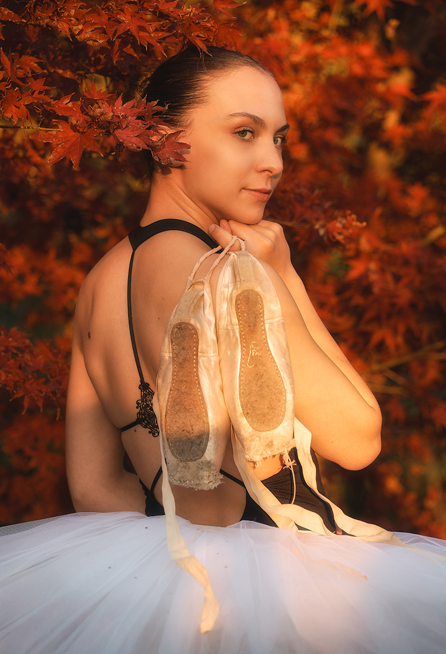 la composizione la trovo ottima, brava anche la modella i colori autunnale la fanno da padrona, a mio parere la pelle della ragazza è un pochino cotaminata dal colore caldo della pianta, ovviamente è un dettaglio, ottimo lavoro.