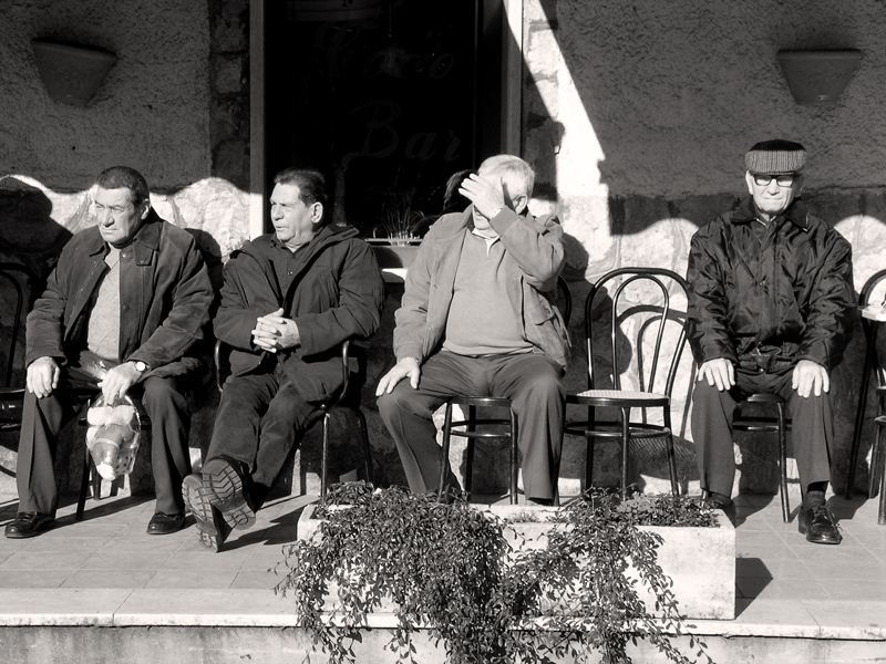 Bellissimo! Non so in termini tecnici ma a me piace da matti. Forse perchè mi ricorda l'osteria del paesino vecchio stampo che purtroppo ( almeno da me) non c'è più, dove i pensionati si facevano la briscola. Quello a destra col berretto è fortissimo  |