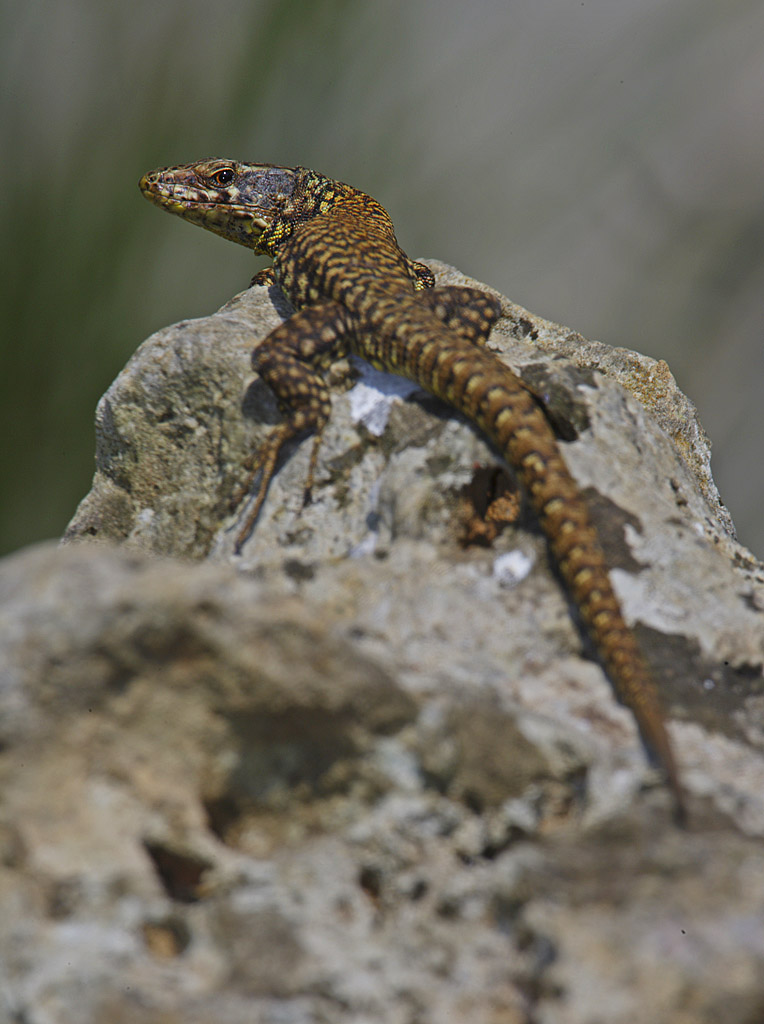 Non concosco l'attrezzatura e i dati di scatto, ma secondo me la zona di nitidezza è toppo rostretta; tutto il lato posteriore della lucertola è fuori fuoco; inoltre quella specie di masso in miniatura, in basso a SX, distrae l'attenzione.