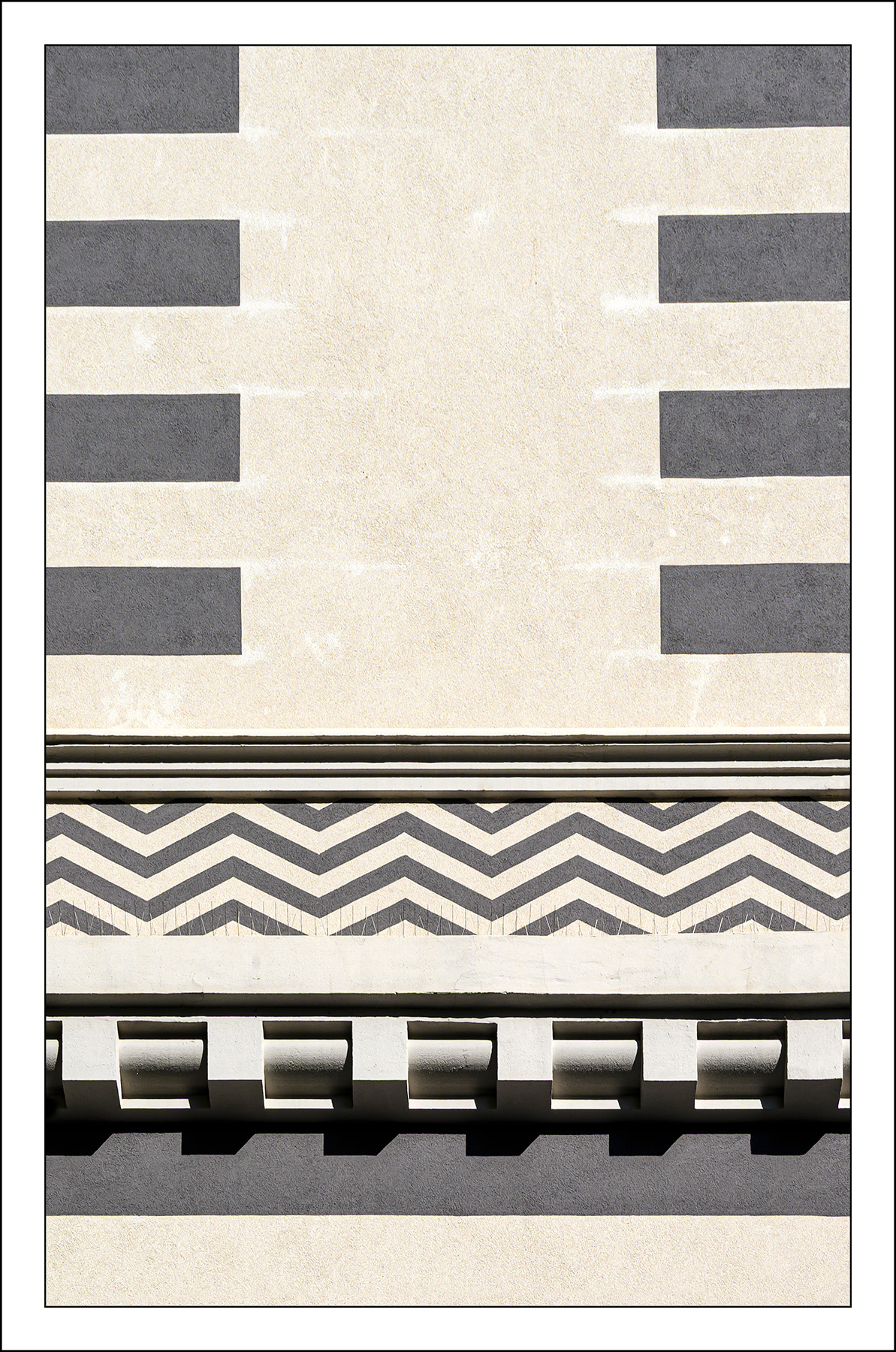 Questa immagine è un affascinante studio di astrazione geometrica e contrasto formale ricavato da un dettaglio architettonico. È un esempio di come l'occhio possa isolare e focalizzare l'essenza grafica del mondo che ci circonda.