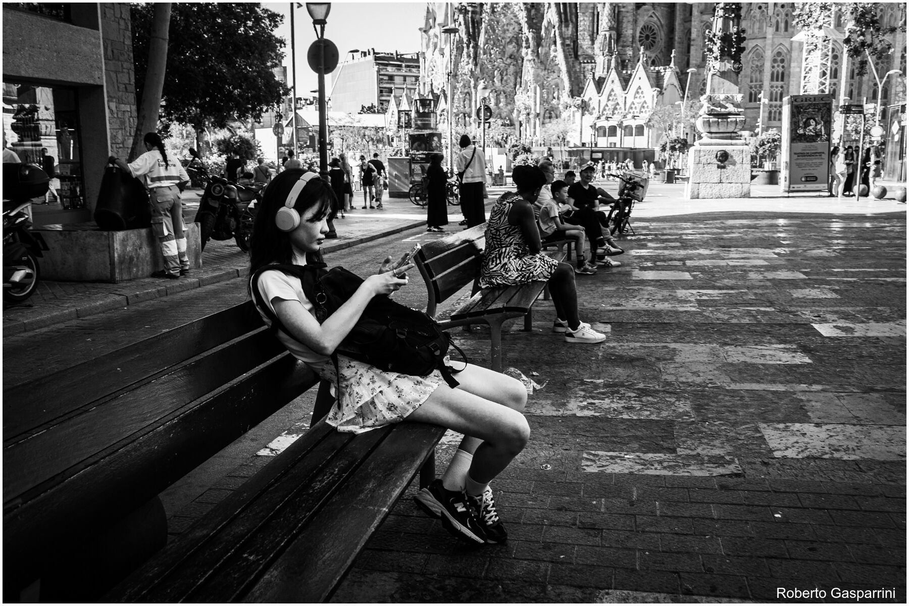 Trovo migliore la parte davanti ai soggetti con uno spazio negativo molto efficace, la parte dietro è un po’ distraente in particolare la persona di spalle.