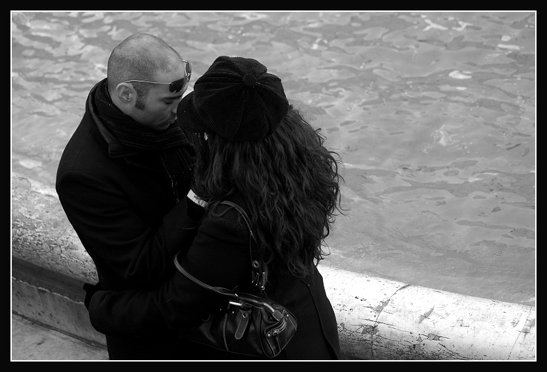 col mio monitor (lcd benq, niente di che..) a me così scura anche piace, peccato solo per il cappotto di lui, quello di lei lo leggo... però la balaustra della fontana (?) mi sembra molto giusta così com'é.