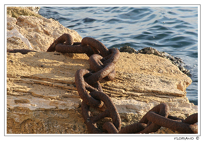 La composizione è ben bilanciata, la linea ad S della catena è gradevole e la pdc è ok. Anche la luce relativamente radente che valorizza la texture dello scoglio è azzeccata. Io avrei cercato di tagliare meno gli anelli in primo piano e proverei anche un bianco e nero.