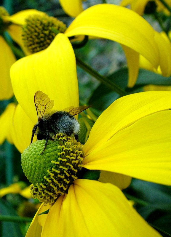 Ben composta e ben realizzata. Il soggetto scuro si staglia bene contro il petalo risaltando i particolari delle ali e dell'addome e, pur ritratto da dietro, trasmette appieno l'azione che sta compiendo.