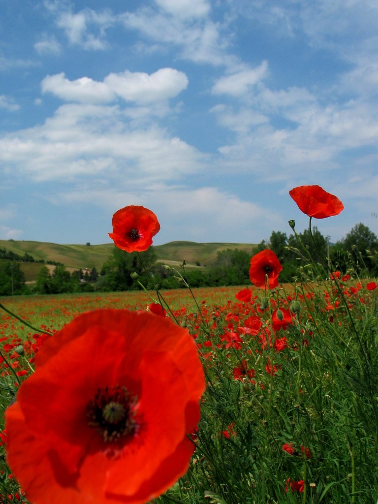 Comunque a me la foto piace, in maniera particolare come si staglia sul cielo il secondo papavero.