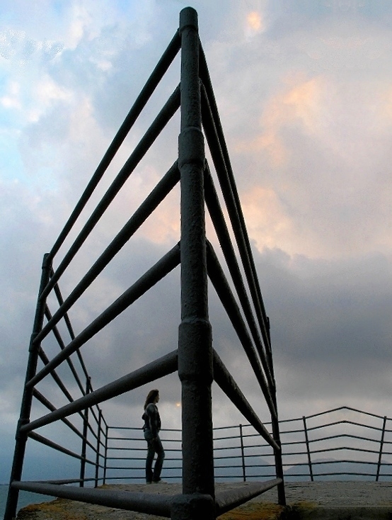 Il cielo forse non è il massimo come bellezza ma il gioco geometrico delle linee è impagabile, la ragazza è perfettamente inquadrata in questa trama, bellissimo anche il gioco prospettico. E' un immagine che andrebbe rifatte in condizioni atmosferiche migliori ma già così l'effetto finale è perfettamente riuscito..