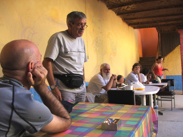 Una piacevole chiacchierata in un rifugio dopo 25-30 km a piedi verso Sanitiago de Compostela (Spagna)
