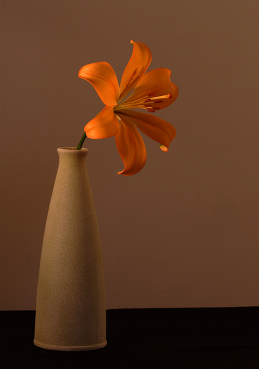 Gradevole, ma per i miei gusti aumenterei il bianco. A me piace più il contrasto. Per farmi capire, un vaso così non lo fotograferei su uno sfondo simile al suo colore. Metterei un pannello nero dietro, il vaso illuminato con questa luce radente ed il fiore che spicca glorioso nel suo arancio  |